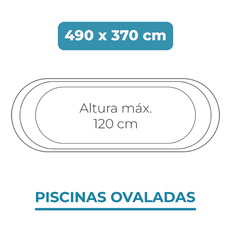 O liner para piscinas 490x370x120 Piscinas Ovais é fabricado em PVC de alta qualidade. O material é tratado contra o fungicida e os raios ultravioletas para garantir a impermeabilidade do copo de água, assim como um revestimento de laca para prolongar a vida do liner.